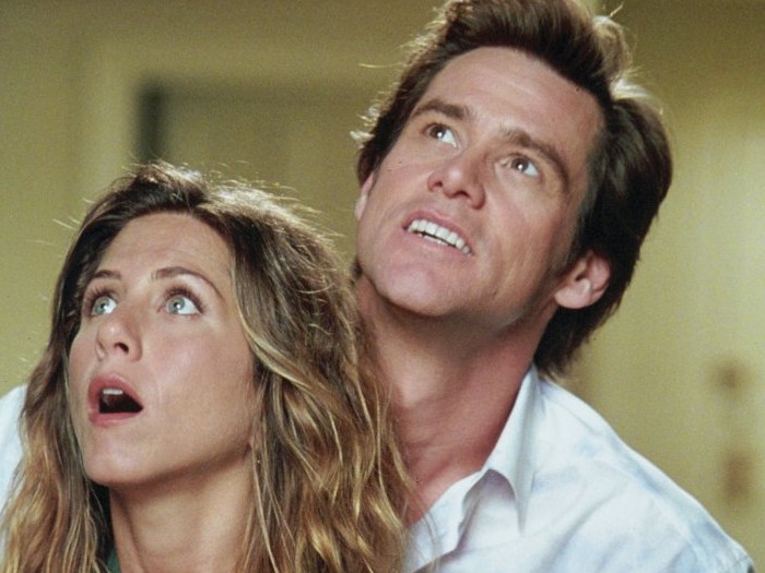 Todo Poderoso (2003), em que o jornalista Bruce, vivido por Jim Carrey (Sim Senhor!), ganha poderes especiais e resolve usá-los para enlouquecer sua namorada Grace, interpretada por Jennifer Aniston (Caçador de Recompensas)